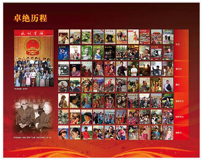 《民族畫報》創(chuàng)刊于1955年2月,周恩來總理題寫刊名?!睹褡瀹媹蟆酚脻h、蒙古、藏、維吾爾、哈薩克、朝鮮等6種文字出版,發(fā)行全國各省市區(qū)及世界50多個國家和地區(qū),一直與《人民畫報》《解放軍畫報》并成為“中國三大畫報”。2013年獲“中國百強(qiáng)期刊”稱號