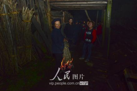 一般要到快過春節(jié)的時候,男方家才專門請人去接女方來洗糯米、打糍粑,新娘方能在夫家住上一夜;在來年農(nóng)忙時節(jié),又接女方來幫忙,夜里仍不能在男方家留宿,幫完忙當(dāng)晚即回去,只有待到女方有身孕后,新娘才到夫家長住。圖為11月16日夜,新娘潘芝銀家為準(zhǔn)備婚禮,燈火徹夜長明。