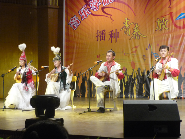 早在本世紀(jì)初,新疆師范大學(xué)音樂學(xué)院就曾在意大利、新西蘭和澳大利亞的國際樂壇,依靠本土特色作品奪得了多枚金牌。近年來,學(xué)院老師、學(xué)生依然保持這一傳統(tǒng)優(yōu)勢,在各項(xiàng)文藝賽事、藝術(shù)展演中獲獎(jiǎng)無數(shù)。2009、2010年學(xué)院民族樂隊(duì)與香港中樂團(tuán),在兩地聯(lián)袂上演“穿越時(shí)空、絲綢之路”音樂會(huì),引起香港、新疆兩地觀眾的熱烈反應(yīng),包括中央電視臺(tái)、鳳凰衛(wèi)視等主流媒體對音樂會(huì)進(jìn)行了深度報(bào)道,被譽(yù)為近年來理念與藝術(shù)的完美結(jié)合。學(xué)院木卡姆樂團(tuán)、冬不拉樂團(tuán)還在2012年文化部文華藝術(shù)院校獎(jiǎng)比賽中獲得五項(xiàng)大獎(jiǎng),在國內(nèi)引起巨大反響。