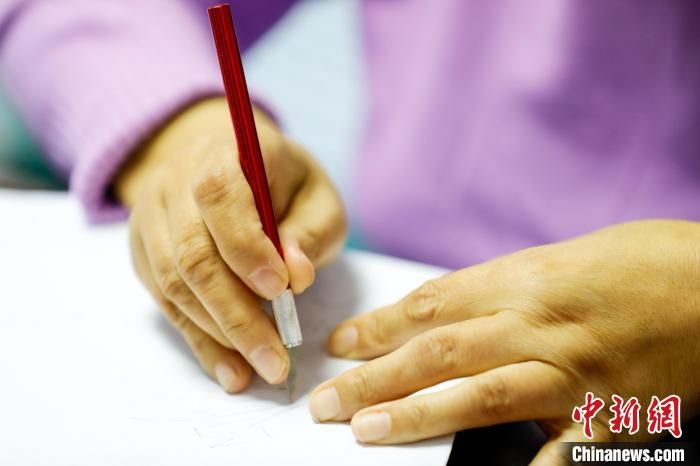 圖為河北省大廠民間刻紙藝人張翠梅正在創(chuàng)作冬奧主題刻紙作品?!⒘?攝