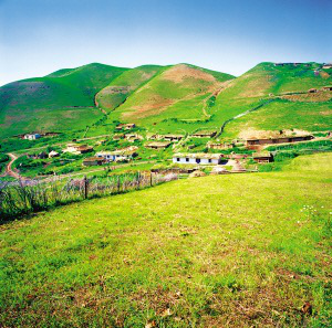 新疆維吾爾自治區(qū)昌吉回族自治州奇臺縣大泉鄉(xiāng)黑溝村村落遠眺