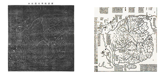 唐代地理學(xué)家賈耽采用裴秀制圖法組織畫工繪制《海內(nèi)華夷圖》,幅面約十平方丈,古今對照,雙色繪畫,注重少數(shù)民族部分,是巨幅唐代中國全圖?!哆M(jìn)海內(nèi)華夷圖及古今郡國縣道四夷述表》云:“唐臣聞地以博厚載物,萬國棋布;海以委輸環(huán)外,百蠻繡錯。中夏則五服九州,殊俗則七戎六狄,普天之下,莫非王臣?!?宋代《華夷圖》被簡化成縱橫各約80厘米,刻于《禹跡圖》背面;圖上不畫方格,有山脈、河流、長城和各州的名稱,其位置大體與實(shí)際相近。山脈用人字形表示,河流為單曲線;河流名稱注記在河源處,囊括眾多異族名稱。西安碑林博物館這塊作為印刷用的兩面刻有地圖的石版,是中國現(xiàn)存最早的石版地圖。唐代巨幅彩繪《海內(nèi)華夷圖》和宋代石刻《華夷圖》不僅標(biāo)志著中世紀(jì)中國制圖學(xué)上最高成就,而且是中國多民族國家的象征。