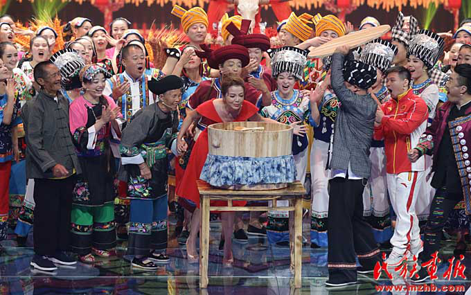 脫貧致富的十八洞村民參加中央電視臺(tái)的《魅力中國城》比賽,向全國人民展示十八洞村的魅力,展示苗族群眾對(duì)美好生活的向往(湘西自治州州委宣傳部 供圖)