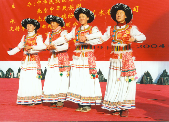 普米族的民歌音樂曲調(diào)主要有呀哈巴拉、阿遼遼、那布升洛等。呀哈巴拉,是一種較古老的民間曲調(diào),旋律悠長委婉、節(jié)奏自由,高區(qū)一般用假聲唱,開頭常用一個弱起引子作為補充樂句,旋律從低音樂向高音區(qū)行進,末尾又回到原來的起音上,前后呼應(yīng)。阿遼遼,這種曲調(diào)一般不帶引子,而是以一個較高的主音作為開頭,一開始就給人以熱情奔放的感覺。阿遼遼一般用以唱情歌、山歌等抒情的民歌。那布升洛,是人們對歌時常用的曲調(diào),有鮮明的節(jié)奏規(guī)范,由一問一答上下關(guān)聯(lián)的兩句構(gòu)成。在聲樂方面,可以分為民歌(含情歌)、哭腔、禮儀和祭祀四個部分。其中民歌又可以分為山歌、老年凋、出門凋、獵歌、生活(生產(chǎn))凋、敬老歌、牧歌等;哭腔屬于發(fā)自內(nèi)心的聲音,不受節(jié)奏和音高的約束;禮儀歌則在特定的禮節(jié)和禮儀中才可以吟唱,因此流行面較窄;祭祀歌主要由原始宗教音樂為主要成分,內(nèi)容豐富且風(fēng)格各異,主要有拜龍凋、祭山神等。