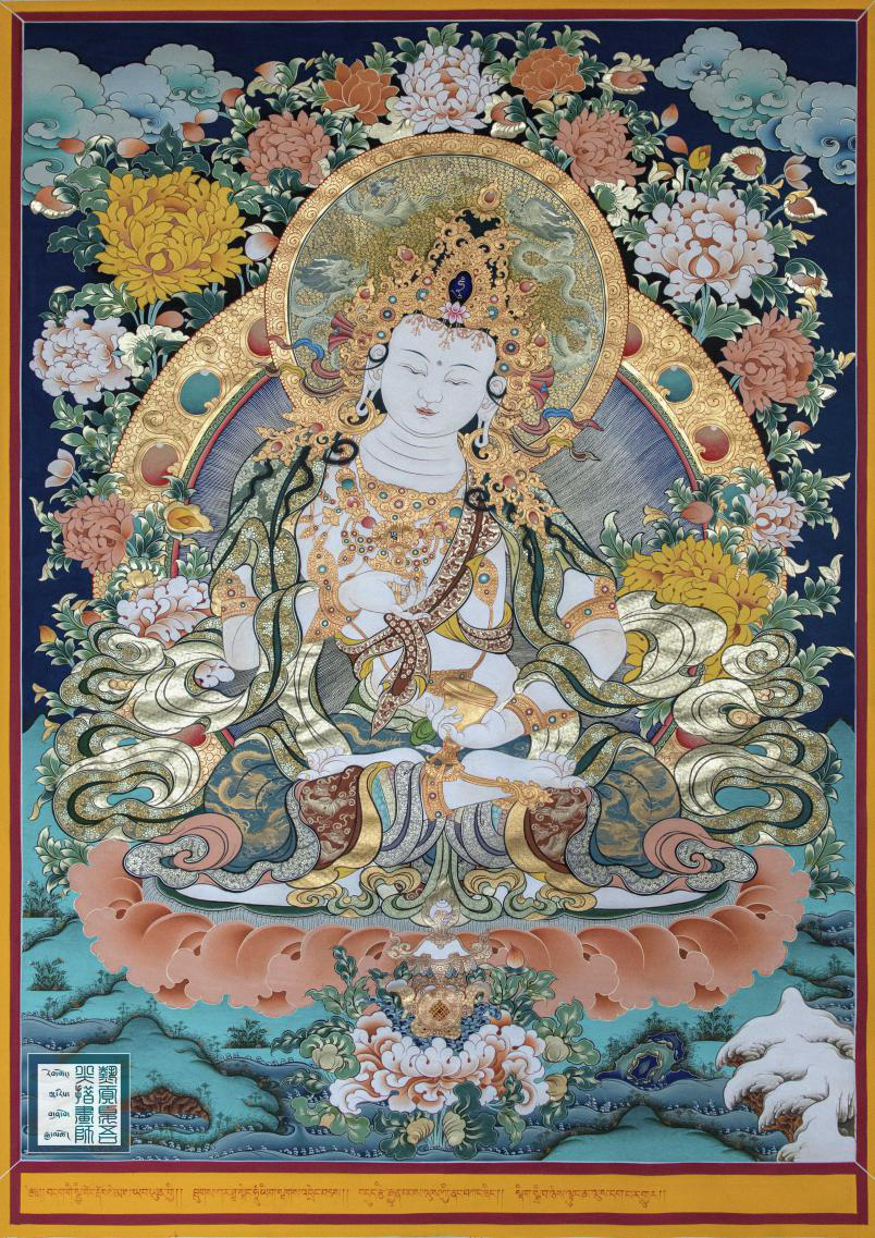 金剛薩埵,梵文Vajrasattva 或Vajrasattva mahāsattva,音譯哇指拉薩特哇摩哈薩特哇,譯名執(zhí)金剛,持金剛,金剛手,金剛手秘密主,金剛薩埵,金剛手菩薩摩訶薩,金剛手薩埵摩訶薩埵等。薩埵者有情之義,勇猛之義,總言勇猛之大士?!饎偹_埵’一語,象征‘堅固不壞之菩提心’與‘煩惱即菩提之妙理’。此名稱于密教中,所指有四::(一)指密教傳法之第二祖。(二)為金剛界曼荼羅中,金剛部院三十七尊之一。(三)為金剛界曼荼羅理趣會中,十七尊中之主尊。(四)為胎藏界曼荼羅金剛部院‘大智金剛部’之主尊。Vajrasattva (梵音之羅馬字轉(zhuǎn)寫形式))由Vajra和Sattva兩個詞組構(gòu)成。Vajra漢文音譯的寫法之一是跋折羅,漢文意譯:金剛?!督饎傢斀?jīng)疏一》釋義:“世間金剛有三種義:一不可破壞,二寶中之寶,三戰(zhàn)具中勝”。Sattva漢文音譯薩埵,意為有情,其世間之義泛指一切有情;mahāsattva 意譯為大士,出世間之義是勇猛大士。Vajrasattva漢譯金剛薩埵,是佛教典籍中與普賢菩薩同體異名的圣尊。釋迦牟尼佛曾在經(jīng)典中說有三部佛、五部佛、千部佛乃至無數(shù)諸佛,而其中的主尊就是金剛薩埵,就象一個王國中有國王、大臣、平民等各式人等,但其中最尊貴的是國王一樣,金剛薩埵是“如海諸部壇城主”。禮敬金剛薩埵的咒語為“南無 谷乎 哇指拉 薩特哇耶”,梵文 Namo Guru Vajrasattvāya。意思是:向眾生依祜之主金剛薩埵圣尊致以皈依的敬禮! “南無俱盧跋折啰薩埵耶”是用繁體漢字音譯的梵語。南無:讀音 na-mo,皈命之義;俱盧:讀音 guru,眾生依祜之主、圣尊之義;跋折啰薩埵:讀音 ban-zer-sa-duo,金剛薩埵圣號;耶:讀音 ya,起增上語義之作用。全句譯成現(xiàn)代漢語的意思是:向眾生依祜之主金剛薩埵圣尊致以皈依的敬禮。
