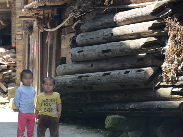 生活在獨龍江流域的獨龍族人,木壘房是他們的主要民居形式。他們沿江而居,在稍為開闊、人能站立的坡地上修建自己傳統(tǒng)的木屋。房舍依山傍水構(gòu)筑成大大小小的村寨。木壘房的建造是靠山打樁,一般離地面二、三尺高,這樣可通風(fēng)防濕。木壘房四周圍以由下而上排列起的椽子為墻,上覆以砍刀削劈的木板,內(nèi)鋪木板或編制的竹篾笆;竹篾房四周圍以編制的竹篾笆為墻,上覆茅草,內(nèi)鋪竹篾笆。木壘房多分為兩層:上層住人,下層圈養(yǎng)牲畜,有獨木梯上下?;鹛潦羌彝サ闹匾笳?,木壘房火塘設(shè)于房屋四角,一般是長輩人火塘在上方,下輩人火塘在下方。一般子女成婚后并不分家,只在房內(nèi)新設(shè)個火塘而已。