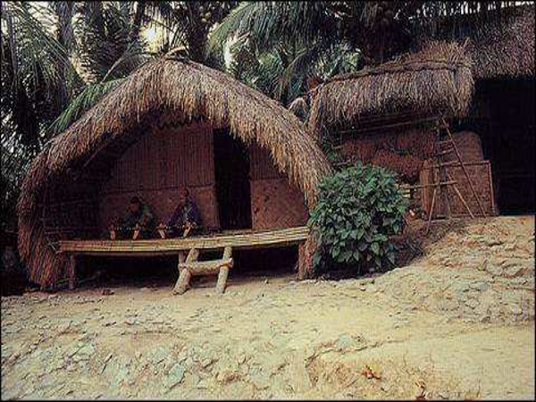 船型屋作為黎族最古老的民居,有高架船型屋與低架(落地式)船型屋之分,其外形像船篷,拱形狀,用紅、白藤扎架,拱形的人字屋頂上蓋以厚厚的芭草或葵葉,幾乎一直延伸到地面上,從遠(yuǎn)處看,猶如一艘倒扣的船。其圓拱造型利于抵抗臺風(fēng)的侵襲,架空的結(jié)構(gòu)有防濕、防瘴、防雨的作用,茅草屋面也有較好的防潮、隔熱功能。而且能就地取材,拆建也很方便。鑒于這些優(yōu)點(diǎn),船形屋得以世代流傳下來。