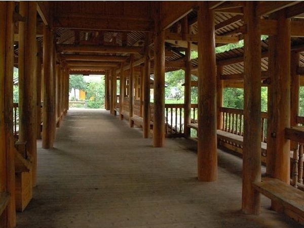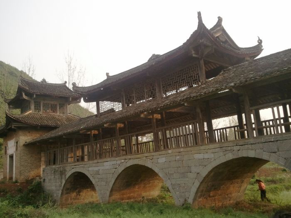 瑤族風雨橋,又被稱之為“涼橋”或“風水橋”。除木橋外,大多是在石拱橋上加蓋橋廊、橋亭和在橋頭的橋臺上建閣樓,穿斗式木構(gòu)架,二層檐或三層檐,有的四層檐,通高在9米~10米間。風雨橋不僅是路人避雨之處,也是瑤族男女青年談情說愛的約會場所。廣西瑤族風雨橋主要集中在富川瑤族自治縣和恭城瑤族自治縣。富川縣保存至今的古代瑤族風雨橋有18座,其中著名的有迥瀾橋(建于明萬歷年間),青龍橋(與前者同時期修建),以及福壽橋、高橋、鳳溪新橋、皇侯泉橋、東轅橋、鸕鶿塘瀾通橋、龍歸橋、興隆橋等。
