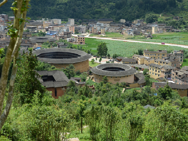 福建土樓所在的閩西南山區(qū),正是福佬與客家民系的交匯處,地勢(shì)險(xiǎn)峻,人煙稀少,一度野獸出沒(méi),盜匪四起。聚族而居既是根深蒂固的中原儒家傳統(tǒng)觀念要求,更是聚集力量、共御外敵的現(xiàn)實(shí)需要使然。福建土樓依山就勢(shì),布局合理,吸收了中國(guó)傳統(tǒng)建筑規(guī)劃的“風(fēng)水”理念,適應(yīng)聚族而居的生活和防御的要求,巧妙地利用了山間狹小的平地和當(dāng)?shù)氐纳痢⒛静?、鵝卵石等建筑材料,是一種自成體系,具有節(jié)約、堅(jiān)固、防御性強(qiáng)特點(diǎn),又極富美感的生土高層建筑類型。這些獨(dú)一無(wú)二的山區(qū)民居建筑,將源遠(yuǎn)流長(zhǎng)的生土夯筑技術(shù)推向極致。