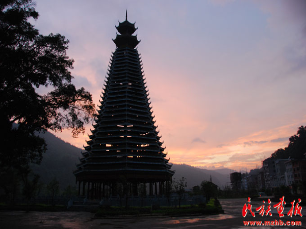 一首侗族詩歌《遠去的鼓樓》這樣寫道:“如今我面對一張泛黃的照片/風雨之中似乎還聽到了鏗鏘之聲/遠古的鼓角征戰(zhàn)廝殺/如海市蜃樓般的幻影/在眼前縹緲而來又縹緲而去/鼓樓毀了又建建了又毀/一個歷盡滄桑的民族呵/木雕畫梁上的記錄/也是那樣千瘡百孔/正因有千瘡百孔作點綴/古老的民族古老的鼓樓/更加放射出不屈的光芒/更加盛開出藝術的花朵。”
