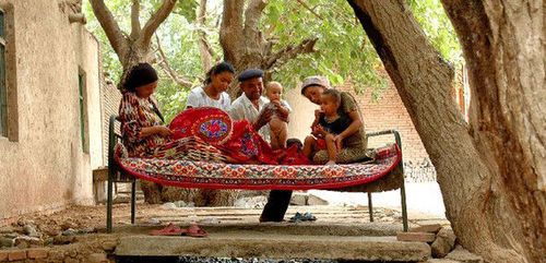走進(jìn)火焰山的時(shí)候,你就會(huì)發(fā)現(xiàn)一種奇怪的現(xiàn)象:家家戶戶的門口或者院落里的葡萄架下,多擺放著一兩張鐵床或木床,甚至有的慶就擺在水渠旁邊。游客會(huì)驚奇地部:這是人們睡覺的床嗎?是的,因?yàn)橥卖敺珶崃?,夜里大家都喜歡在房外睡覺,外面夜風(fēng)涼爽,又沒有蚊子咬,當(dāng)?shù)孛耧L(fēng)淳樸,素來有“夜不閉戶、路不拾遺”的好風(fēng)尚,所以人們都放心 在屋外睡覺,一覺能睡到日上三竿。你看到的這種“鐵床擺在大門外”的情景,在吐魯番的許多鄉(xiāng)村,甚至在吐魯番市區(qū)內(nèi),都是人們司空見慣的。