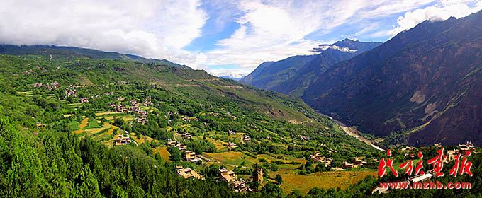 甘孜州東部的丹巴山寨體現(xiàn)了天人合一的理念,遠(yuǎn)遠(yuǎn)看去,充滿靈氣的山谷中,翡翠般的青草綠樹之中,是那沉甸甸的田地和隱在密林深處的寨房,伴著時有時無的潺潺溪流,一幅富有動感的絕妙山寨畫卷隨之展示在你的眼前(民族畫報資料)