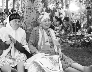 撒班節(jié)上,塔塔爾族老人餐后休閑聚在一起