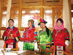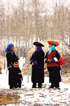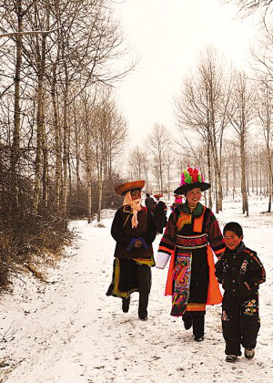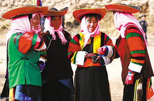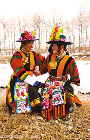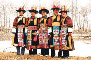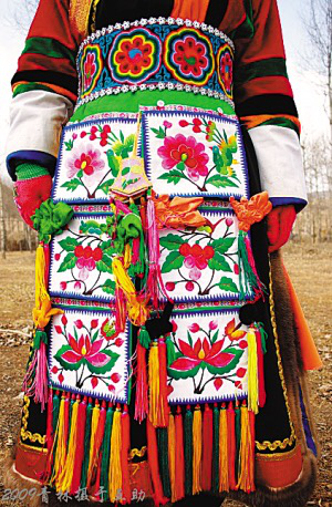 隨著時代的更替,土族女性的服飾發(fā)生了很大變化,有的傳統(tǒng)服飾已消失,有的服飾經(jīng)過推陳出新,重放光彩。如舊時的繡花高領(lǐng),如今變成直翻兩用領(lǐng);蓋在“扭達”上的長頭巾——“扭達爾秀巾”,變成了今日土族女性使用的短頭巾?,F(xiàn)今,廣大土族女性,不僅喜穿本民族服飾,而且還愛著時尚服飾,她們或使土族服飾時裝化,或使時裝土族服飾化,豐富了土族的服飾文化。