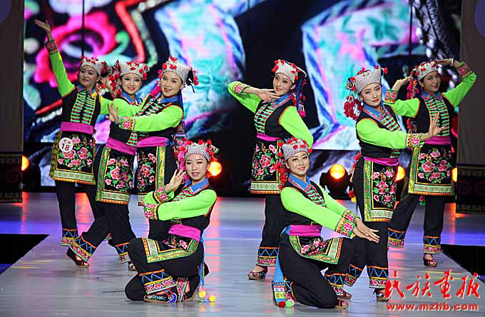 2017年火把節(jié)上楚雄民族服飾賽裝節(jié)目展演。賽裝節(jié)已經(jīng)不局限于大山深處,而是走上了更廣闊的舞臺(楚雄州民宗委 供圖)