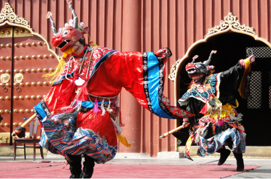 內(nèi)蒙地區(qū)的查瑪樂(lè)舞已與藏族地區(qū)的“羌姆”明顯不同。隨著藏傳佛教傳入蒙古地區(qū)后,積極的吸收和融合了蒙古族傳統(tǒng)音樂(lè)舞蹈和薩滿教神舞的因素后形成了蒙古化的查瑪樂(lè)舞。因此,內(nèi)蒙地區(qū)的查瑪內(nèi)具有復(fù)合型和多元性特點(diǎn)。2008年,查瑪樂(lè)舞被列入國(guó)家級(jí)非物質(zhì)文化遺產(chǎn)。