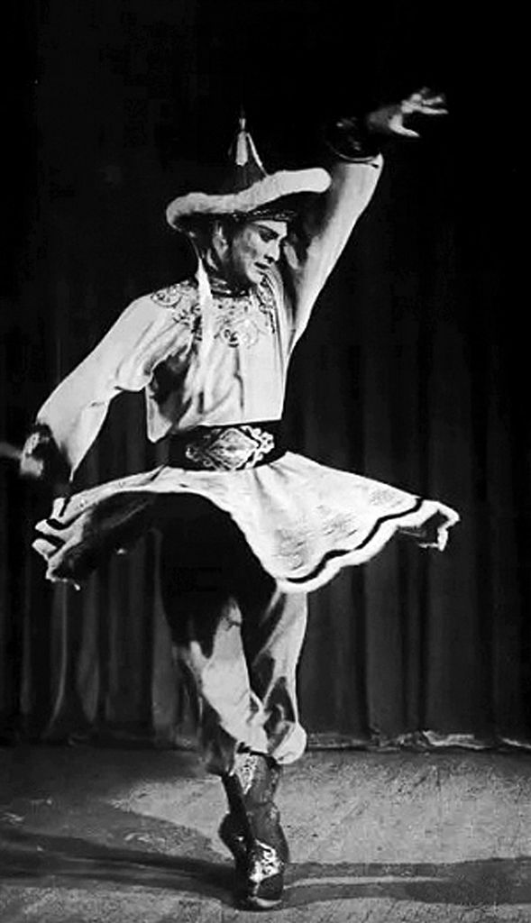 1947年,從張家口開往綏遠(yuǎn)的列車上,有個青年目不轉(zhuǎn)睛地凝視著窗外——無邊無際的草原上,一位牧馬的漢子騎術(shù)精湛,氣魄勇猛,手中揮舞著套馬桿于馬群中自由穿梭,剽悍而又豪邁?!熬褪沁@個感覺!”青年靈光乍現(xiàn)。不久,雄渾激昂的《牧馬舞》在舞蹈界引起轟動,尤其是那策馬揚鞭的動作,節(jié)奏明快剛?cè)嵯酀?jì),日后在無數(shù)蒙古舞作品中反復(fù)出現(xiàn)。編創(chuàng)這支舞蹈的青年就是著名舞蹈表演藝術(shù)家、編導(dǎo)藝術(shù)家賈作光。
