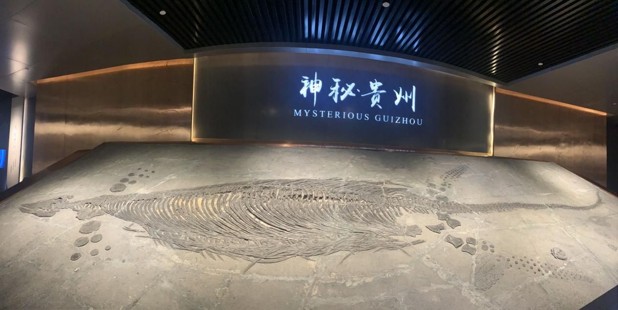 “神秘貴州”展廳以“古生物王國(guó)”為主題,分為“沉積巨著”“生命源頭”“龍的故鄉(xiāng)”“陸地尋蹤”四個(gè)部分,用百余件精美的古生物化石標(biāo)本、生動(dòng)形象的場(chǎng)景復(fù)原和多媒體影片,引領(lǐng)觀眾走入神秘的“古生物王國(guó)”,講述遠(yuǎn)古貴州的生命故事。