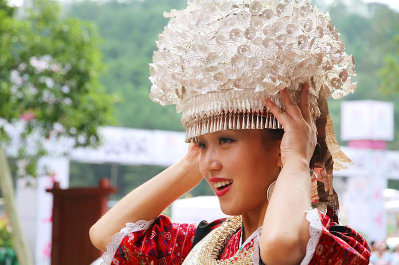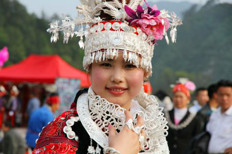 圖9 頭戴銀花帽的苗族姑娘(攝影:雷安平)