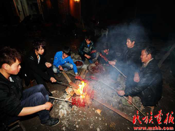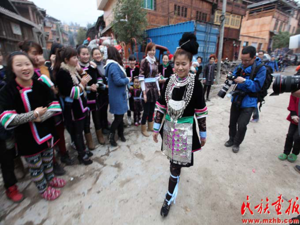 這次結(jié)婚的共有15對(duì)新人(多時(shí)有二三十對(duì)),均來(lái)自本寨的青年男女。婚禮從大年二十六開(kāi)始,共進(jìn)行三天,在三天的婚禮中新郎新娘家均有婚宴,尤以第一天中午的規(guī)模最大也最為隆重。