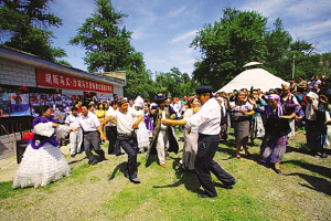 6月17日,在胡斯馬義·沙胡馬爾登陸南北極紀念碑揭牌儀式后,哈薩克族群眾自發(fā)地跳起了歡快的舞蹈,而后大家又歡聚在氈房中,暢談各民族團結和發(fā)展的問題。