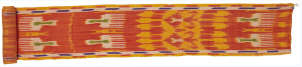 艾德萊斯綢收集于新疆庫爾勒地區(qū),大面積的紅色之中,點綴著象征維吾爾族生存環(huán)境的黃色,以及伊斯蘭教崇尚的綠色和象征著天空的藍(lán)色。木梳紋、石榴紋、龕座紋等紋樣呈條狀規(guī)則排列,多種色彩拼合出強(qiáng)烈的視覺效果,洋溢著跳蕩激昂的韻律和熱情似火的西域風(fēng)情。