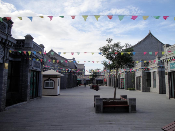 中華回鄉(xiāng)第一街位于永寧縣納家戶北側(cè)。該項(xiàng)目以納家戶清真大寺為中心擴(kuò)展門前廣場,以廣場為中心向北,直北長380米,東西寬107米,占地面積93.78畝,建筑面積1.6萬平方米,建成商鋪177套。所有建筑遵循當(dāng)?shù)鼗刈宓慕ㄖL(fēng)格,采用青磚砌筑,尤其在細(xì)節(jié)處理上用符號、色調(diào)與裝飾來表現(xiàn)回族建筑的精髓。雕梁畫棟,飛檐四出,并且在墻壁、牌坊、檐口、山墻等處運(yùn)用了大量磚雕、伊斯蘭花飾等將伊斯蘭文化藝術(shù)與中國傳統(tǒng)建筑風(fēng)格有機(jī)的結(jié)合在一起,為景區(qū)增加了濃郁的歷史文化氛圍。該街道由北向南依次分為土特產(chǎn)區(qū)、民俗文化區(qū)、旅游紀(jì)念區(qū)、餐飲區(qū)、配套商業(yè)區(qū)五大功能區(qū)。