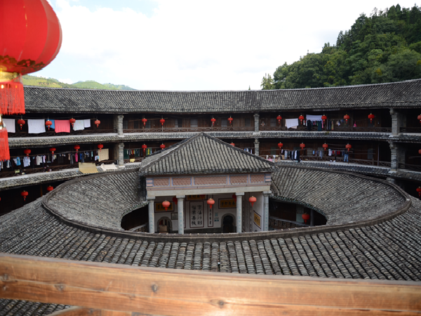 一座土樓就是一個(gè)藝術(shù)殿堂。每一座土樓,又如同一個(gè)“大家族,小社會(huì)”。土樓內(nèi),居住在同一屋頂下的幾十戶(hù)幾百人同祖同宗同血緣同家族,過(guò)著共門(mén)戶(hù)、共廳堂、共樓梯、共庭院、共水井的和睦生活。這種聚族同樓而居的生活模式,典型地反映了客家人的傳統(tǒng)家族倫理和家族的親和力。而且,樓內(nèi)的客家人,住著層數(shù)相同、開(kāi)間面積相等、無(wú)明顯朝向差別、更無(wú)貴賤等級(jí)之分的均等居室。平等聚居,反映了客家人融洽和睦的家風(fēng)和平等團(tuán)結(jié)的傳統(tǒng)。
