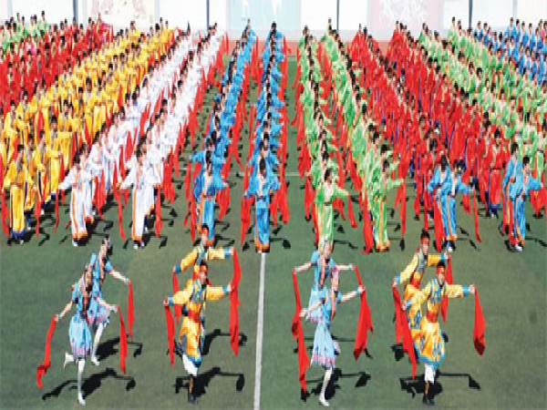 阿拉善左旗蒙古族學(xué)校將長調(diào)民歌、蒙古族傳統(tǒng)舞蹈、馬頭琴演奏、陶布秀爾彈奏、沙力博爾式摔跤、蒙古象棋、吉日格、諾爾布,薩吾爾登等文體活動及棋牌游戲納入課堂教學(xué)及二課活動。在一年當(dāng)中,根據(jù)不同的季節(jié),讓孩子們走進(jìn)社區(qū)、自然、農(nóng)社、牧宅、尋覓生活本源,了解傳統(tǒng)文化。