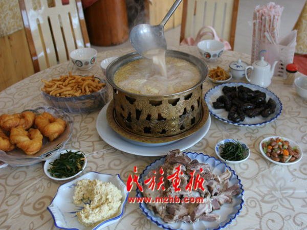 白食除了滿足人們食用需求之外,還有較高的藥用價值。白食中蘊含著大量的氨基酸、蛋白質、油脂、微量元素等有益物質。奶茶可以消除肉食的油膩,促進消化吸收;馬奶可以增加胃液,幫助消化;酸奶能治療內(nèi)臟疾病,健胃、壯陽、降血脂、止渴解毒;黃油能安神養(yǎng)神、潤肺通絡……