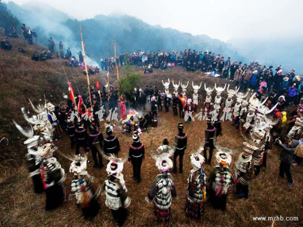 “招龍節(jié)”是苗族同胞特有的節(jié)日,屆時(shí)舉行隆重的招龍祭祀儀式,人們希望通過這儀式把龍和祖先的靈魂招回,保佑村寨風(fēng)調(diào)雨順,五谷豐登,人畜平安。一般在十三年的農(nóng)歷二月辰日舉行。