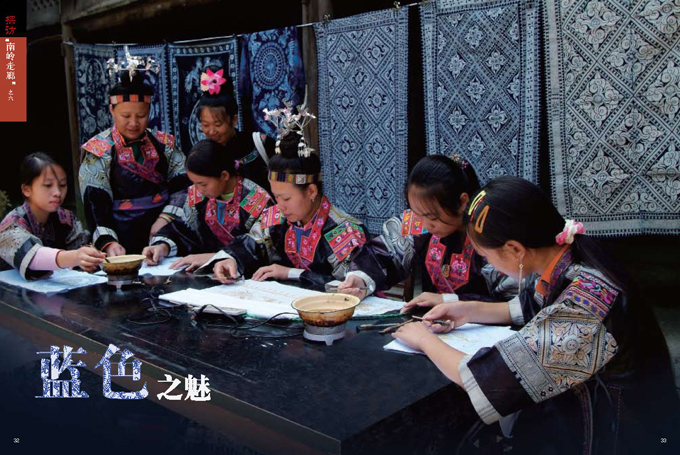 蠟染是貴州省丹寨縣、安順縣、織金縣苗族世代傳承的傳統(tǒng)技藝。 丹寨縣、安順縣及織金縣是以苗族為主體的多民族聚居區(qū),在長(zhǎng)期與外界隔絕的艱苦環(huán)境中,這里的居民逐漸形成了自給自足的生活方式,古老的蠟染技藝因此得以保留下來(lái)。按苗族習(xí)俗,所有的女性都有義務(wù)傳承蠟染技藝,每位母親都必須教會(huì)自己的女兒制作蠟染。所以苗族女性自幼便學(xué)習(xí)這一技藝,她們自己栽靛植棉、紡紗織布、畫蠟挑秀、浸染剪裁,代代傳承。在此狀況下,這些苗族聚居區(qū)形成了以蠟染藝術(shù)為主導(dǎo)的衣飾裝束(以上三照片由劉軍提供)。