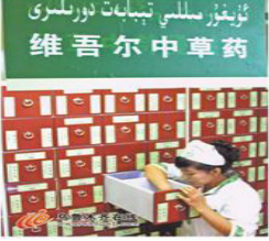 維吾爾族醫(yī)藥在新疆基本醫(yī)療體系中,發(fā)揮著積極作用,有效地促進(jìn)和提高了新疆民族的醫(yī)療水平。維吾爾族醫(yī)藥對??茖2≈委煼椒í?dú)具特點(diǎn),如皮膚病、傳染性疾病、呼吸疾病、風(fēng)濕性疾病、心血管疾病的治療等,都具有明顯的臨床療效。特別是治療以應(yīng)用成熟劑、清除劑為特色的異常體液性疾病,療效顯著。
