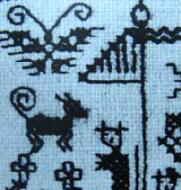 挑花(又叫十字挑花)是滿族民間刺繡中廣為流傳的一種針法。用交叉的十字組成抽象的圖案,粗獷簡潔,是人們?nèi)粘I钣闷分械闹饕b飾圖案,色彩比較單一,后來發(fā)展為復雜的十字繡。