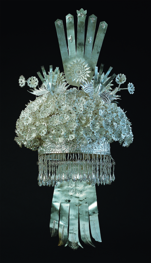 銀飾是苗族服飾文化的重要組成部分,也是苗族貴金屬傳統(tǒng)手工藝發(fā)展水平的集中體現(xiàn)。苗族銀飾以其多樣的品種、奇美的造型和精巧的工藝,向人們呈現(xiàn)了一個瑰麗多彩的藝術世界,展示著一個有著豐富內涵的精神世界。