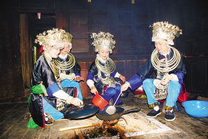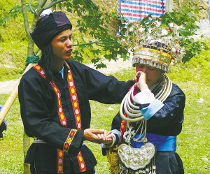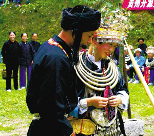 幾個(gè)月后,女方會(huì)用籃子提來(lái)可口的食物,與男方共享,并開(kāi)始送女紅等信物。很自然地,玩伴心中就涌起“人圖人”、“人謀人”的念頭,玩山隨之進(jìn)入最激動(dòng)人心的成雙階段。