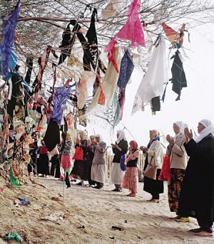 在新疆,尤其是在維吾爾族聚居的南疆,普遍存在類似內(nèi)地廟會(huì)式的麻扎朝拜活動(dòng)。朝拜者面向麻扎傾訴心中的哀怨痛苦,以各種方式表達(dá)自己的祈求:有向麻扎求消災(zāi)避禍的,有求富貴發(fā)財(cái)?shù)?,還有求夫妻和睦的,求理想伴侶的,求生兒育女的,求老有所養(yǎng)的,求天降甘霖的……