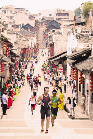 參賽選手在黎平翹街穿行。