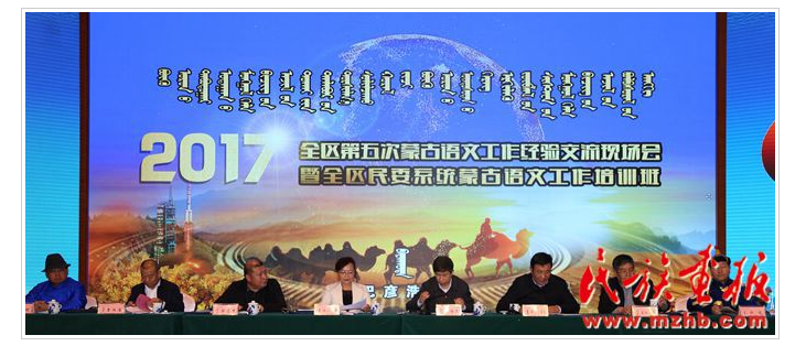 2017年11月28至29日,內(nèi)蒙古自治區(qū)第五次蒙古語文工作經(jīng)驗(yàn)交流現(xiàn)場會暨全區(qū)民委系統(tǒng)蒙古語文工作培訓(xùn)班在阿拉善盟召開。會議上,內(nèi)蒙古自治區(qū)民委主任奇錦玉就內(nèi)蒙古自治區(qū)蒙古語文工作的新局面提出了幾點(diǎn)要求。