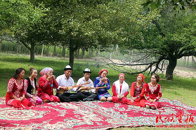 據(jù)色帕巴依鄉(xiāng)黨委委員阿依木古麗·艾山卡德介紹,該鄉(xiāng)在鄉(xiāng)中心小學(xué)專門開(kāi)設(shè)課程教學(xué)生學(xué)彈庫(kù)姆孜琴,并積極舉辦“我為庫(kù)姆孜代言”活動(dòng),積極培養(yǎng)庫(kù)姆孜傳承人。此外,鄉(xiāng)里還專門組建有庫(kù)姆孜彈唱隊(duì)。“我們利用百日文化廣場(chǎng)和日常的演出走村串巷,積極參加縣宣傳部開(kāi)展的各項(xiàng)文體活動(dòng)。今年2月開(kāi)展的群眾大會(huì),把庫(kù)姆孜音樂(lè)重新填詞,配合惠民政策宣傳,將傳播民族文化與群眾思想政治工作相結(jié)合?!蓖瑯?,在烏恰縣吾合沙魯鄉(xiāng)恰提村,當(dāng)?shù)伛v村工作隊(duì)積極組織20名返鄉(xiāng)學(xué)生開(kāi)辦“庫(kù)姆孜彈唱文藝培訓(xùn)班”,廣泛調(diào)動(dòng)返鄉(xiāng)大學(xué)生加入到文化傳承的行列中。