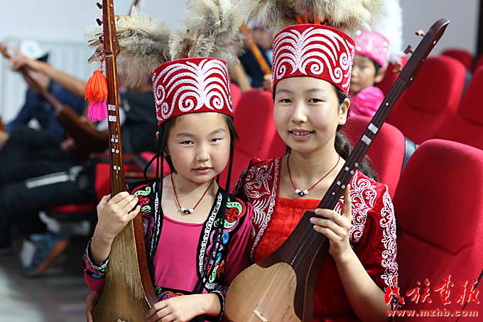 離開(kāi)工作室,記者們來(lái)到了鄉(xiāng)里的文化站,10多個(gè)柯?tīng)柨俗巫搴⒆诱趯W(xué)彈庫(kù)姆孜。站在一旁教學(xué)的老師是來(lái)自新疆師范大學(xué)大四的學(xué)生沙力哈爾別克·玉山巴依,學(xué)習(xí)音樂(lè)專業(yè)的他每年暑假都會(huì)回到自己的家鄉(xiāng)色帕巴依,為孩子們教授庫(kù)姆孜。他對(duì)記者說(shuō):“每次回家我都能感到孩子們對(duì)學(xué)習(xí)民族樂(lè)器的渴望。鄉(xiāng)政府也特別支持我,提供場(chǎng)地和經(jīng)費(fèi),能為孩子們教自己本民族的樂(lè)器,我也很高興?!?/p>