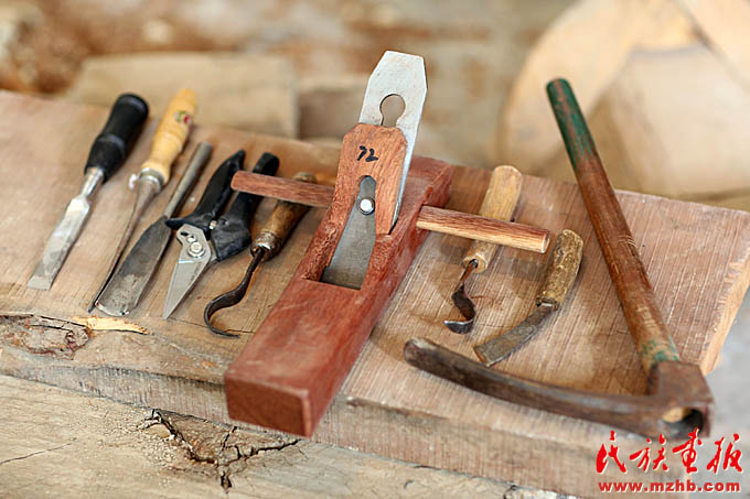 這間工作室的主人叫阿吉?jiǎng)e克·買買達(dá)洪,主人恰巧有事外出,他的弟弟,年輕朝氣的吾蘭別克張羅著給記者們當(dāng)起了翻譯。正忙活著打磨樂(lè)器的小伙叫木沙,今年31歲,問(wèn)起庫(kù)姆孜的制作工藝,他才把頭抬起來(lái),笑著說(shuō):“我做這個(gè)十年了。一把庫(kù)姆孜,往往琴身是杏木,蓋子是松木。杏樹(shù)、松樹(shù)木切割后放在干燥的地方,一兩年后才能用?!睅?kù)姆孜有三根弦,琴弦以前用動(dòng)物的腸子手工自制,現(xiàn)在有的工匠開(kāi)始使用現(xiàn)成的弦。判斷庫(kù)姆孜手工藝人手藝高低的關(guān)鍵何在?木沙解釋說(shuō),“要看彈出來(lái)的聲音。木頭的原料不同,出來(lái)的聲音也不同?!边@個(gè)回答似乎也隱藏了手工藝人的絕活所在,可意會(huì)不可言傳的技藝,往往在一代代的工匠手中以師徒親授的方式傳承。