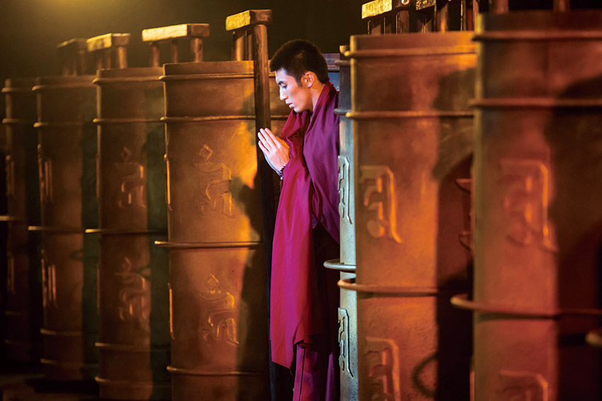 扮演倉央嘉措的是就讀于解放軍藝術(shù)學(xué)院的學(xué)生黃琛迪。丁偉說:“我跟很多知名演員都有過接觸,但是每個人都很忙,有好多錢要賺,沒有一個靜下心來的狀態(tài)。而這個演員的眼睛很干凈,還沒有被名利、榮譽(yù)侵?jǐn)_。我們把他帶到藏區(qū)去采風(fēng),臨走時他提出想到寺廟里住一段時間。我們到了甘肅夏河倉門寺,他在那里和僧人們一起生活,每天看他們誦經(jīng)。他逐漸進(jìn)入狀態(tài),慢慢體會到了倉央嘉措的精神世界。”