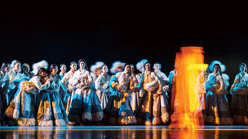 2015年12月27~29日,中央民族歌舞團(tuán)大型原創(chuàng)舞劇《倉央嘉措》在民族劇院隆重上演,引起轟動。這是2015年度國家藝術(shù)基金最高資助項目,也是中央民族歌舞團(tuán)建團(tuán)60余年來創(chuàng)排的首部舞劇。它由中央民族大學(xué)博士生導(dǎo)師丹珠昂奔教授編劇,國家一級導(dǎo)演、中央民族歌舞團(tuán)團(tuán)長丁偉擔(dān)任總導(dǎo)演,國家一級作曲家李滄桑、著名舞臺服裝設(shè)計師麥青等國內(nèi)知名藝術(shù)家聯(lián)袂制作。舞劇共分五幕,時長159分鐘,參與演出的舞蹈演員有60多人。劇組通過海選的形式,選出3名年齡分別為14歲、17歲、20歲的優(yōu)秀舞蹈演員扮演不同時期的倉央嘉措。整部舞劇通過豐富的舞蹈語言以及精心制作的音樂、服裝、舞美,將主人公倉央嘉措對故鄉(xiāng)、母親的熱愛以及對愛情的向往淋漓盡致地展現(xiàn)在舞臺上,同時集中展示了他身后燦爛而輝煌的民族文化。