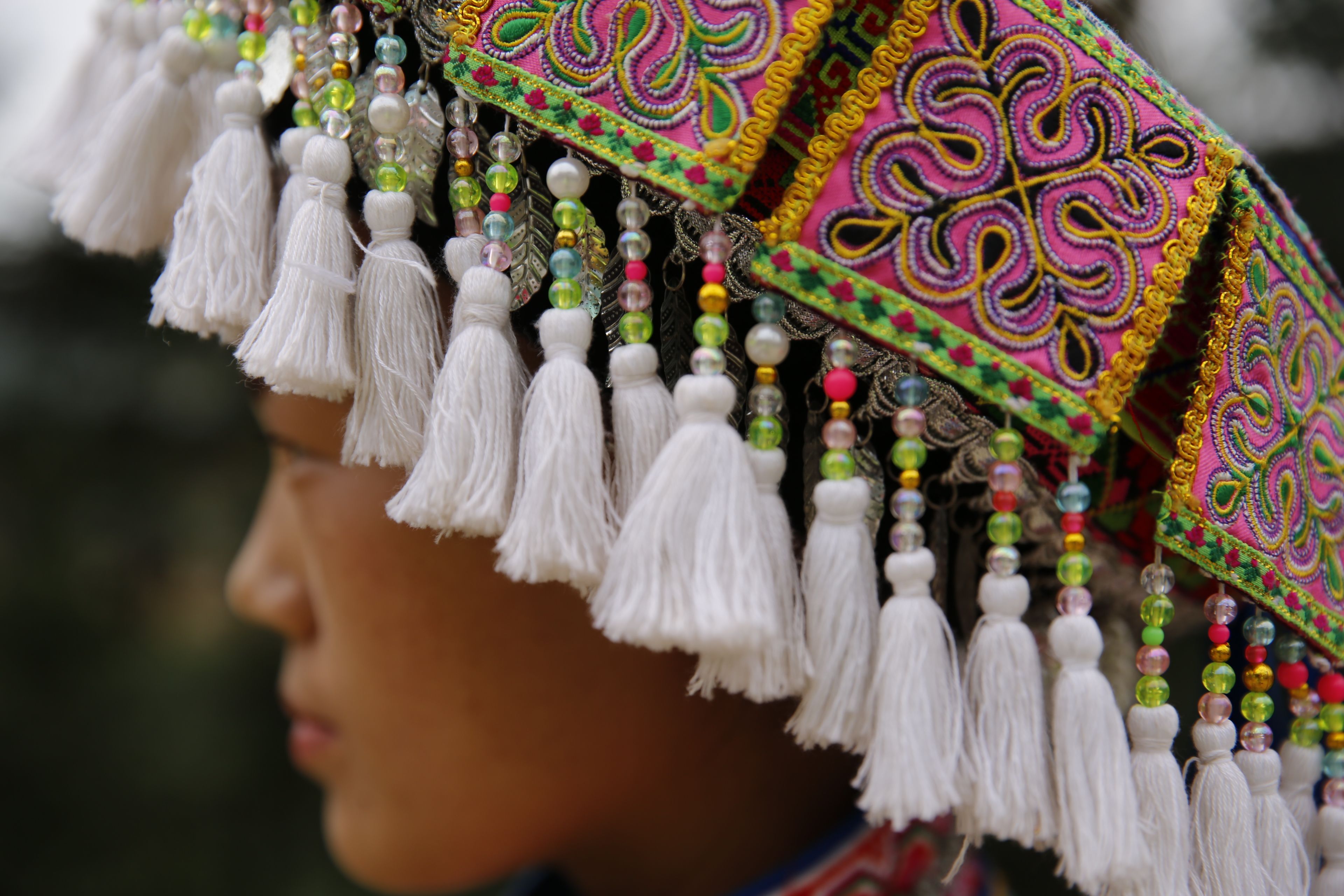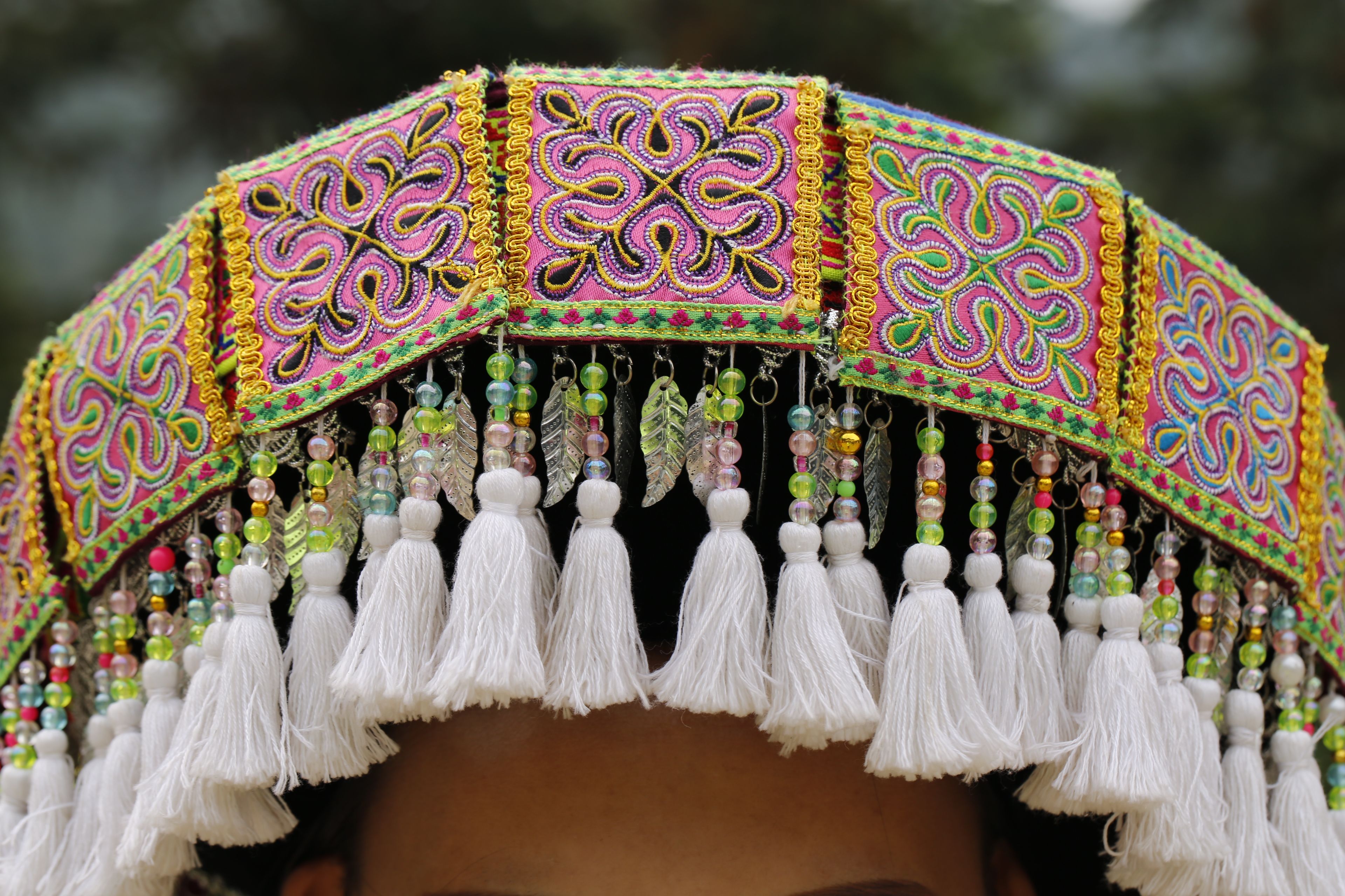 苗族女子服飾花帽周圍裝飾3