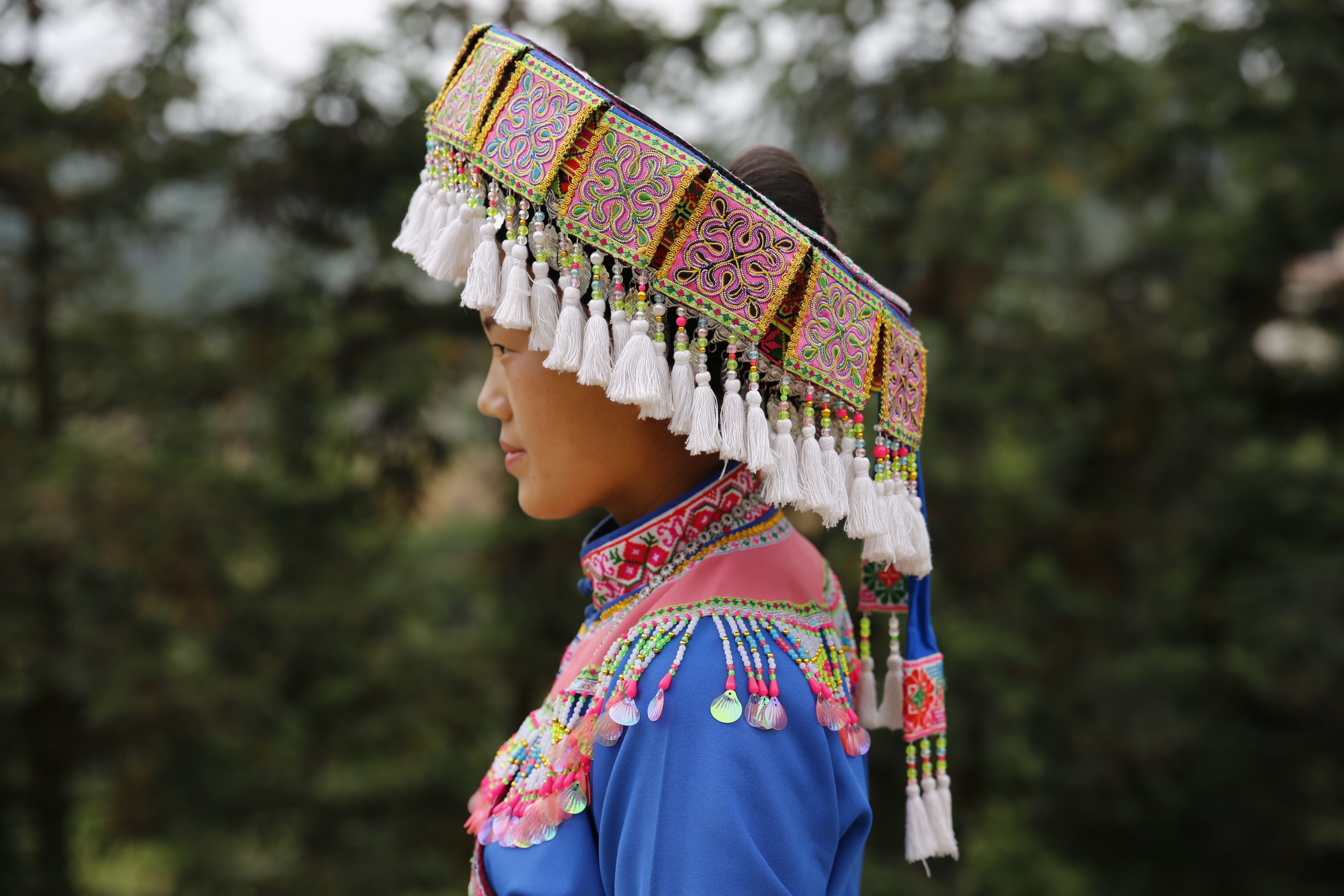 苗族女子服飾花帽-側(cè)面
