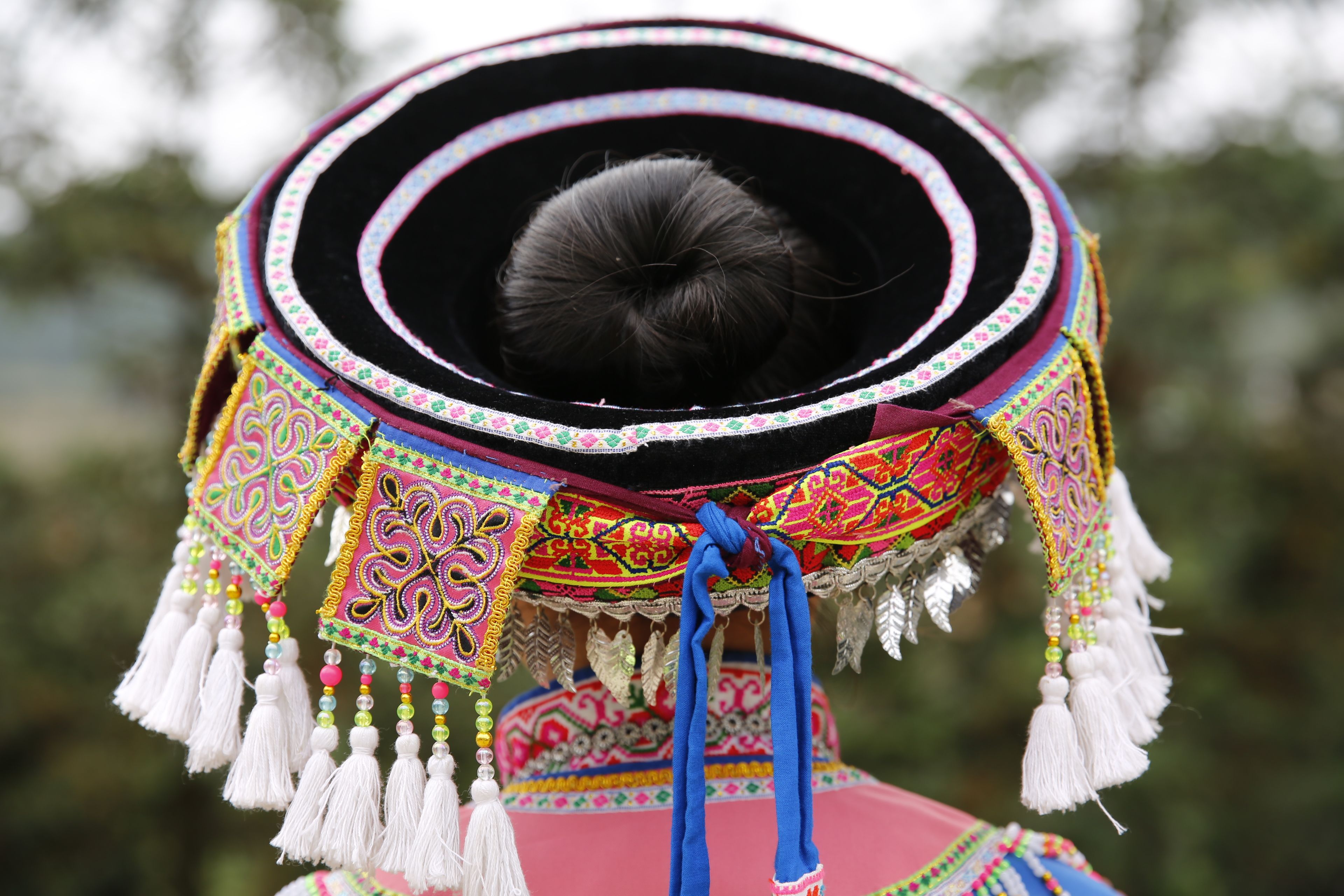 苗族女子服飾花帽-背面繡花及裝飾