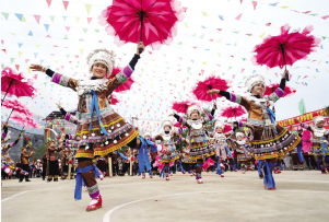 “打同年”是融水縣苗、侗和瑤等少數(shù)民族的文化傳統(tǒng),一般是村與村之間相約在春節(jié)期間進行,聯(lián)誼雙方互稱“同年”。整個活動一般持續(xù)三天,包括進寨儀式、蘆笙聯(lián)歡、圍同年儀式、聯(lián)歡晚會、百家宴等。雙方通過吹蘆笙、跳蘆笙舞、對歌等多種傳統(tǒng)方式聯(lián)歡,增進交往交流交融。