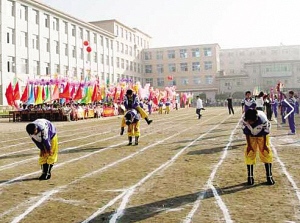 陣擺長龍跑馬城。“分兵遣將選良才,陣擺長龍對面排。正欲齊心奪勝券,格格送信出城來?!边@首詩描寫的是滿族兒童春季玩的一種游戲——“跑馬城”。玩這種游戲時,孩子們分成人數(shù)相同的兩隊(duì)橫列,面向而站。玩時,甲隊(duì)先誦兒歌一句,乙隊(duì)接下句,一遞一句:“機(jī)機(jī)靈,跑馬場,馬城開,打發(fā)格格送信來!”“你要誰?我要某某某!”被點(diǎn)到名字的兒童立刻向?qū)Ψ經(jīng)_去,對方陣營則手臂相連形成一道防線,沖撞者如果沖破對方的防線,就從對方陣營中挑選一人帶回自己的隊(duì)伍;如果沒有沖破對方的防線,沖撞者就被對方俘虜了。然后雙方再進(jìn)行下一輪“對話”和“沖營”。游戲結(jié)束時,以剩下人數(shù)多的一方為勝方。這種游戲最適合男孩玩,他們往往玩得滿頭大汗,樂此不疲!
