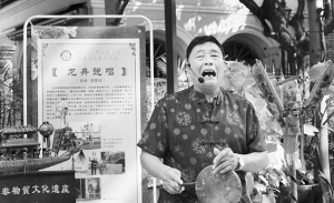 后來,在一個(gè)民俗文化節(jié)上,吳家耀手執(zhí)龍舟杖表演龍舟說唱的情景,引起了媒體的關(guān)注。他還帶著這一根龍舟杖,把龍舟說唱唱到了北京天壇,連不懂粵語的老北京也聽得津津有味。